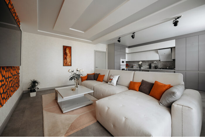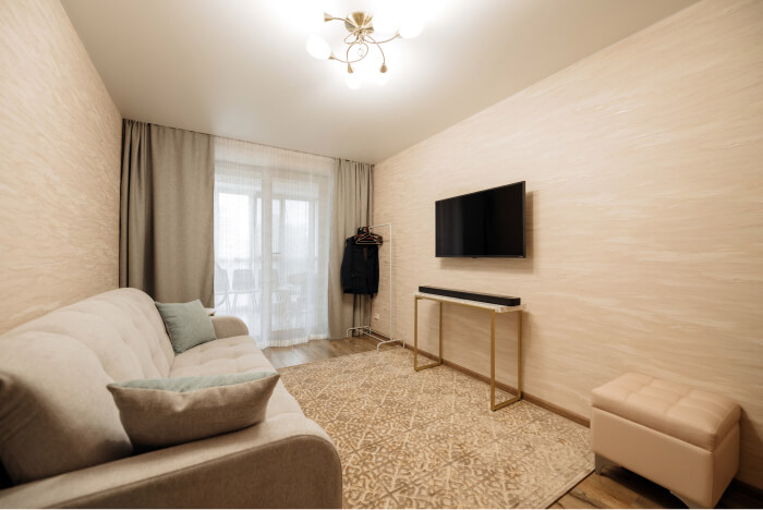 От разработанного дизайн проекта до установки мебели, техники а также текстиля.